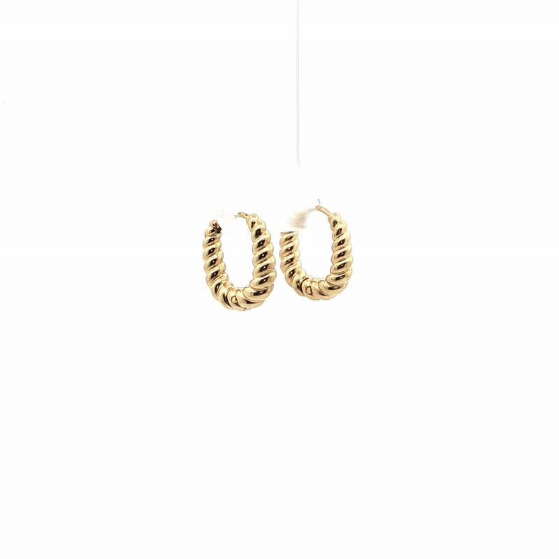 Argolas com design trançado em espiral, inspiradas nas cordas clássicas.