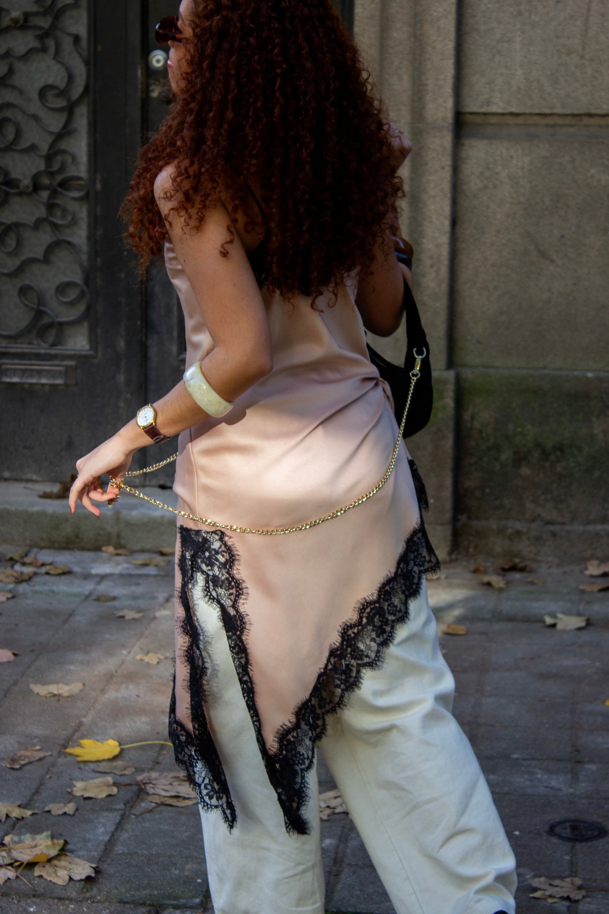 - Uma alça extra em corrente dourada para um visual mais formal ou de festa.